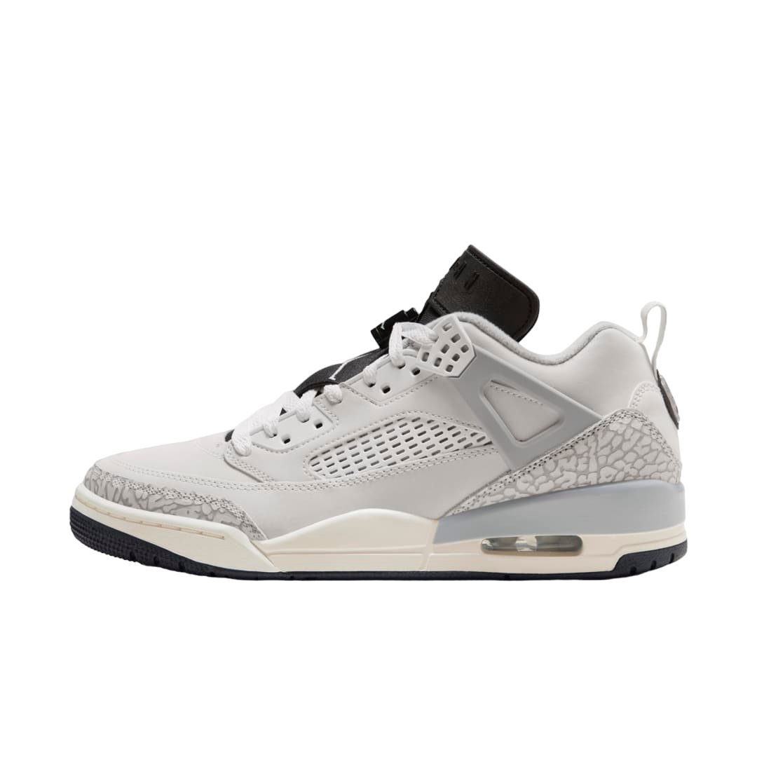 The Jordan Spizike GS Black is a notable addition to the Jordan Brand lineup, combining elements from several iconic Air Jordan models to create a unique and eye-catching silhouette. This sneaker is a tribute to the legendary filmmaker and sneaker aficionado Spike Lee, whose collaboration with Michael Jordan and the brand brought forth some of the most memorable campaigns in sneaker history. The Spizike GS Black features a dominant black colorway that enhances its sleek and versatile design, making it suitable for a variety of outfits and occasions. The shoe's construction incorporates elements from the Air Jordan III, IV, V, and VI, offering a blend of classic Jordan aesthetics and modern flair. In terms of materials and craftsmanship, the Jordan Spizike GS Black does not disappoint. The upper is typically crafted with a mix of leather and synthetic materials, providing durability and comfort for everyday wear. The shoe is designed with several unique details, such as the elephant print accents reminiscent of the Air Jordan III and the netting from the Air Jordan IV, which add to its distinctive look. Additionally, the shoe features a padded collar and a cushioned midsole, ensuring a comfortable fit for those on the move. This pair is especially appealing to younger sneaker enthusiasts due to its vibrant connection to basketball culture and sneaker history, making it not just a fashion statement but also a piece of the legacy of Michael Jordan and Spike Lee's collaborative spirit.